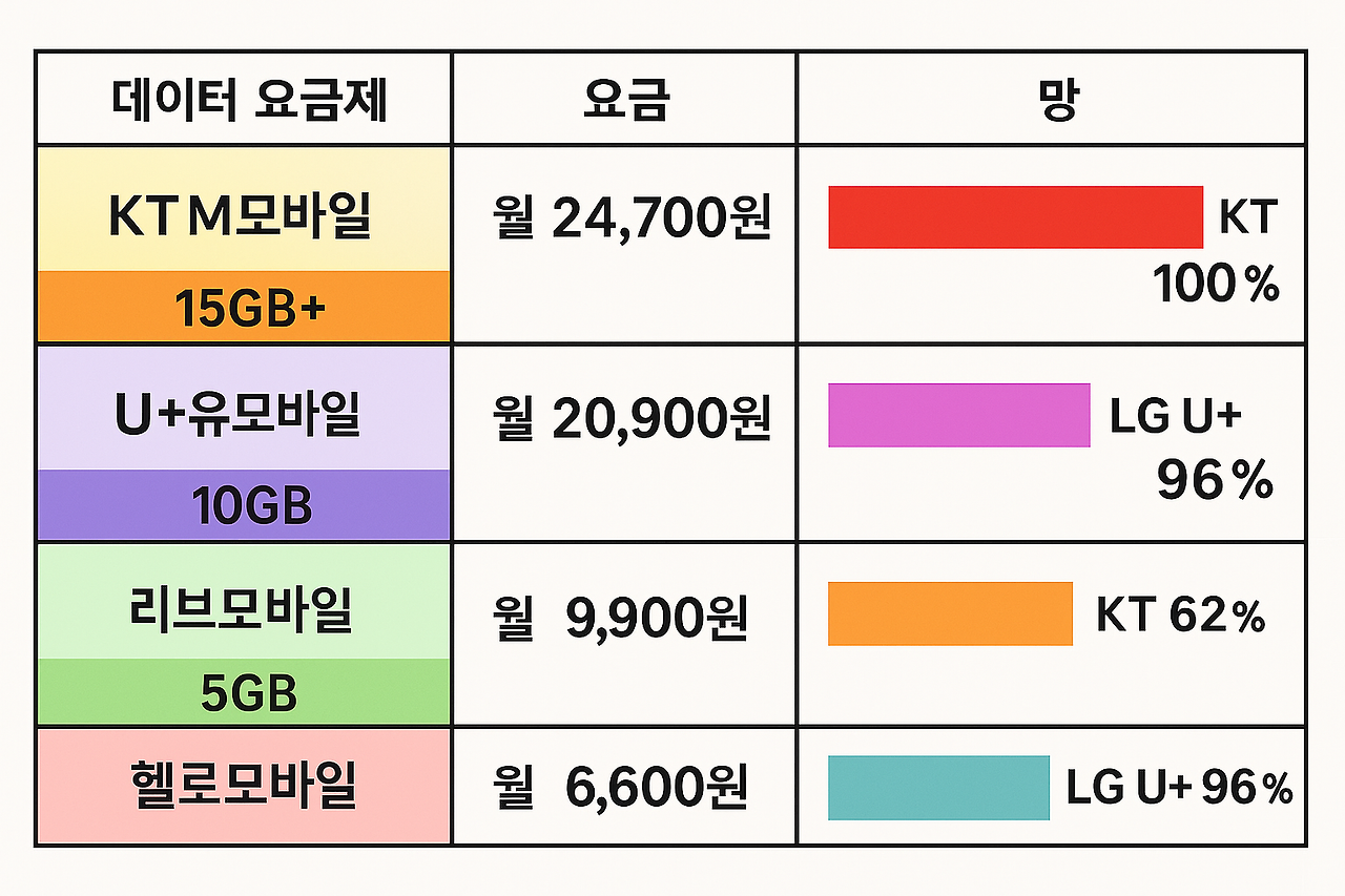 - ✅ 데이터 절약 기술로 요금제 다운계약 가능